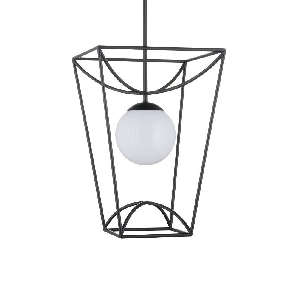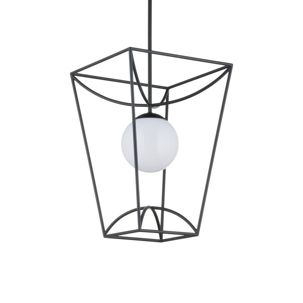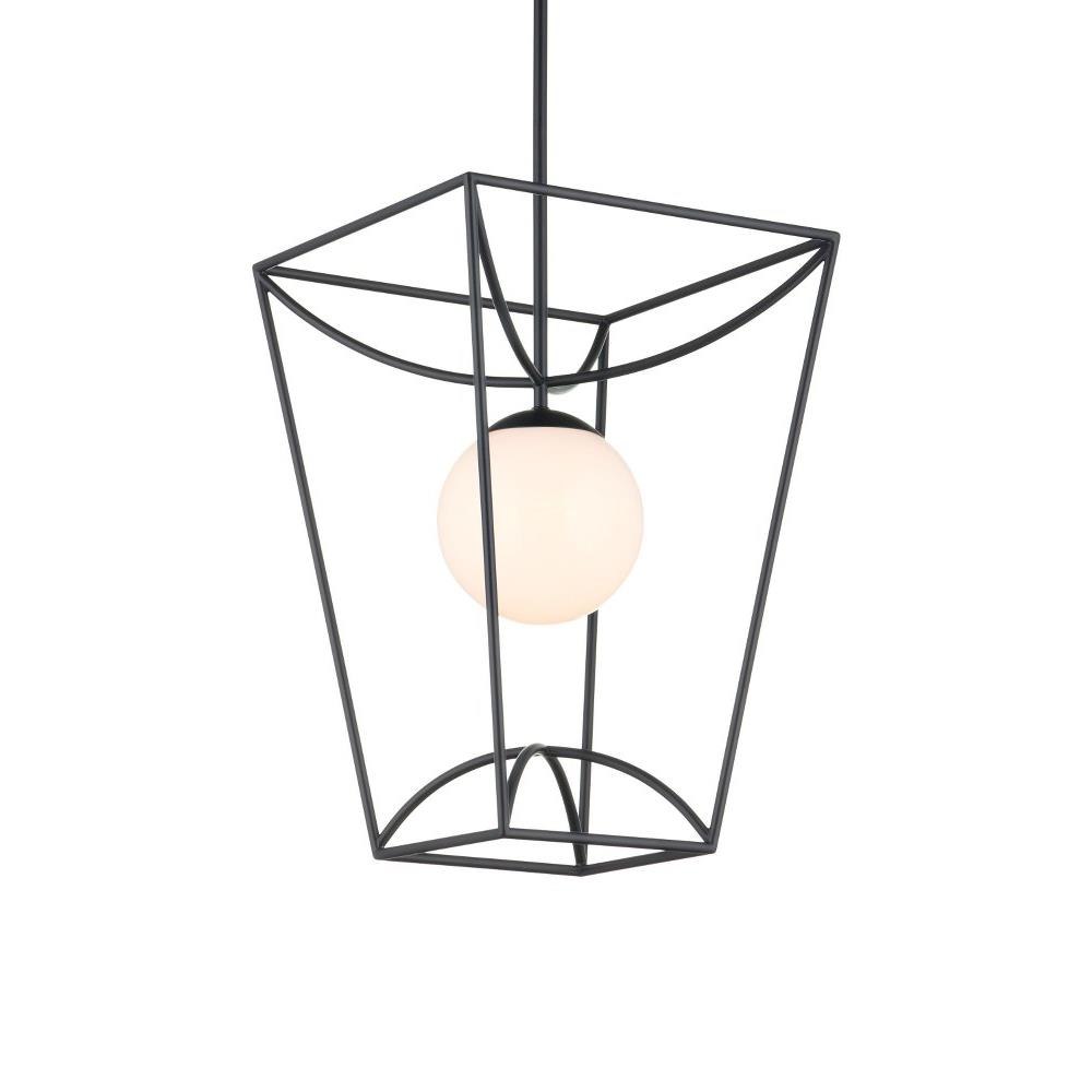 The Rochefort Small Lantern is an outdoor pendant with beautiful lines that subtly draw themselves into a lantern-like form. The black powder-coated finish makes it durable for exterior environments and contrasts the milky white glass globe it balances in its center. Whereas traditional lanterns may be limited to time-honored and transitional design aesthetics, the delicacy of this black lantern’s profile makes it fitting for mid-century modern homes and those that lean contemporary. Adjustable from 25.75" to 67.75" with use of included chain/rod kit/cable. If your space calls for a longer drop, additional chain/rods/cable is available for purchase.