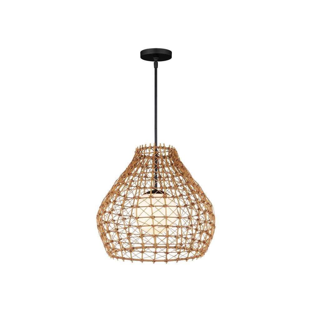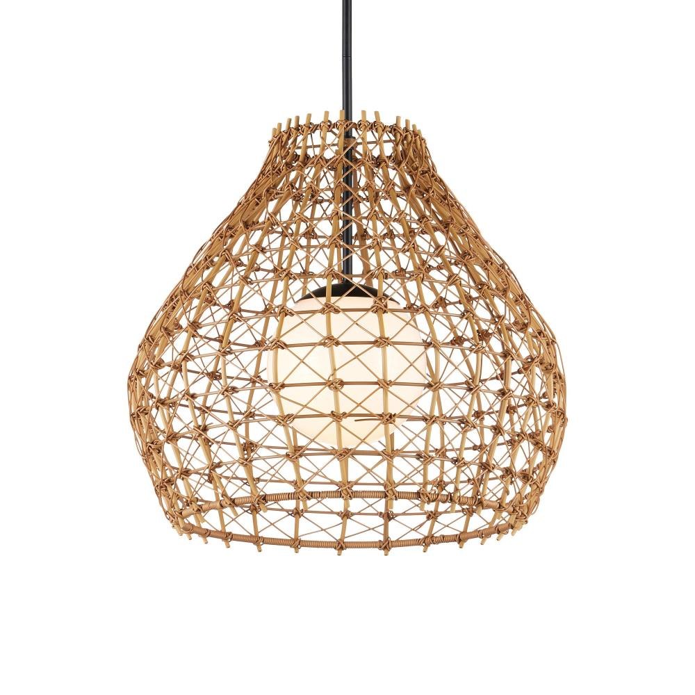 The Bly Outdoor Pendant brings artisanal charm to exterior spaces with its eye-catching crisscross pattern, meticulously woven from all-weather synthetic wicker. The large-scale design offers a handcrafted look, while the intricate weave adds depth and texture that feels both refined and relaxed. A black powder-coated metal frame ensures durability and contrast and the pendant is wet-location tested. Adjustable from 25" to 66.5" with use of included chain/rod kit/cable. If your space calls for a longer drop, additional chain/rods/cable is available for purchase.