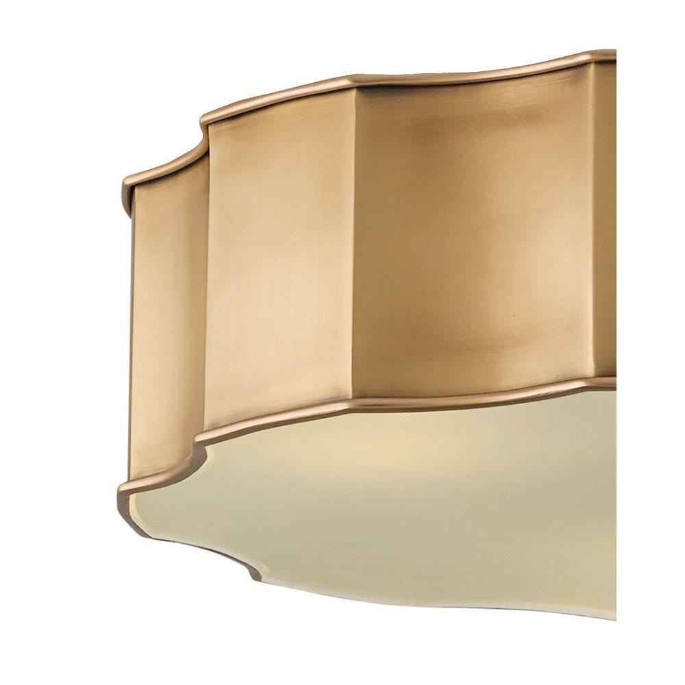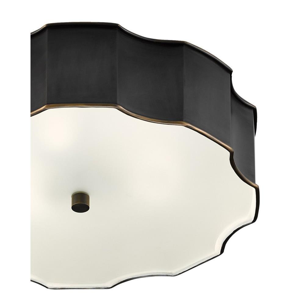 The Wexford Bronze Flush Mount is made of brass in an oil-rubbed bronze finish. The darkness of the surface contrasts the soft glow produced by the opaque glass diffuser, which is fitted to the bronze flush mount with a matching finial. We also offer the Wexford in a brass finish.
