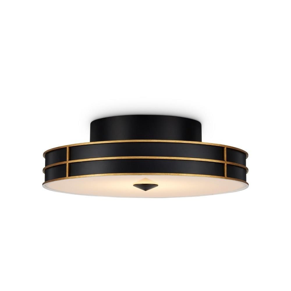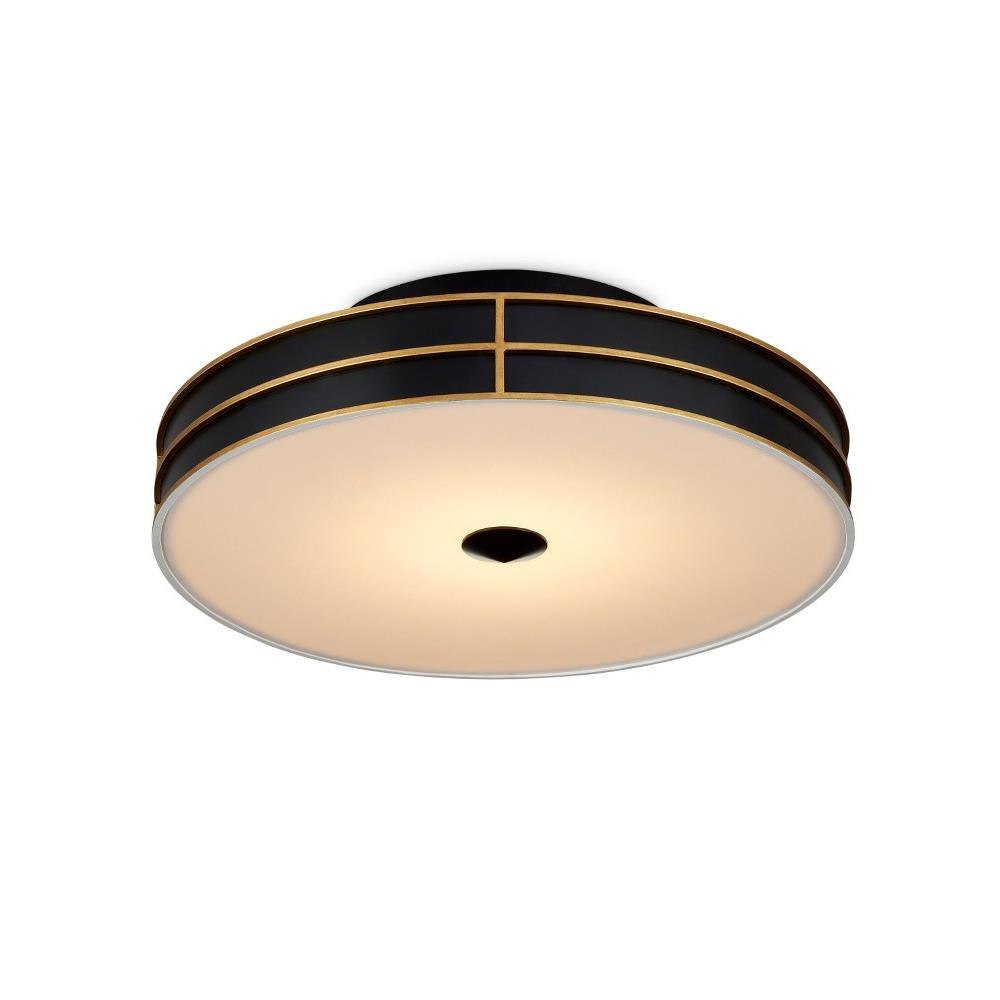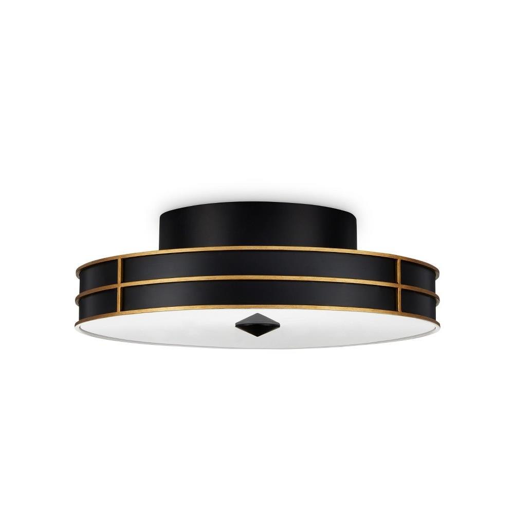 The design of the Fielding Black Flush Mount was inspired by the engineering capabilities that its integrated LED technologies bring to the table. Tom Caldwell was looking to create a very modern profile -- one that has a hint of Hollywood glamour in its makeup. Made of wrought iron, the exterior of the shade is in a sophisticated mix of Satin Black and Contemporary Gold finishes with a Sugar White rim where the metal meets the acrylic diffuser.