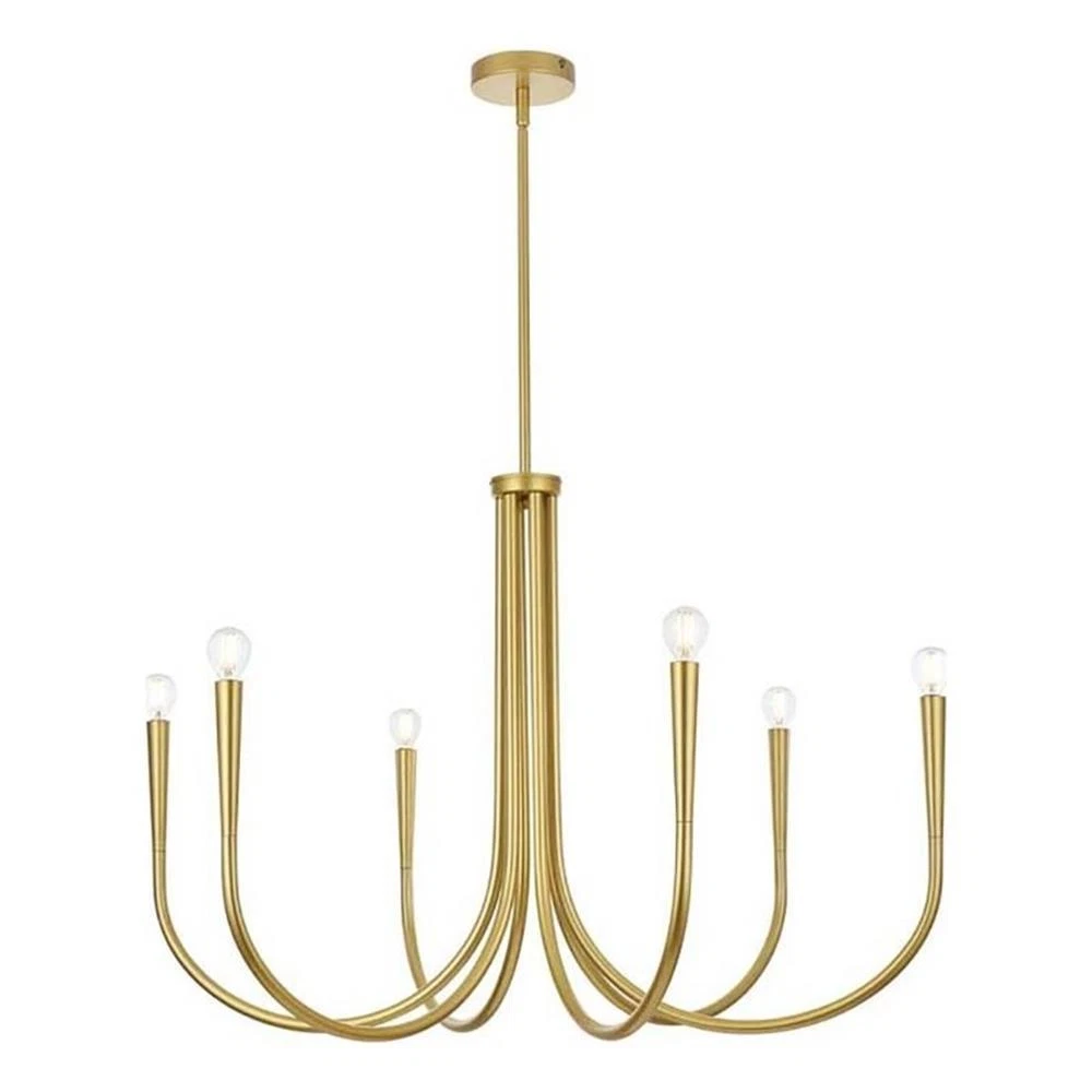 Living District Layne 36" 6-Light Transitional Metal Chandelier in Brass