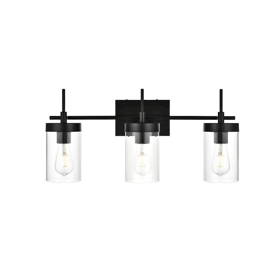 Living District Benny 3 Light Bath Sconce, Black/Clear - LD7319W24BLK
