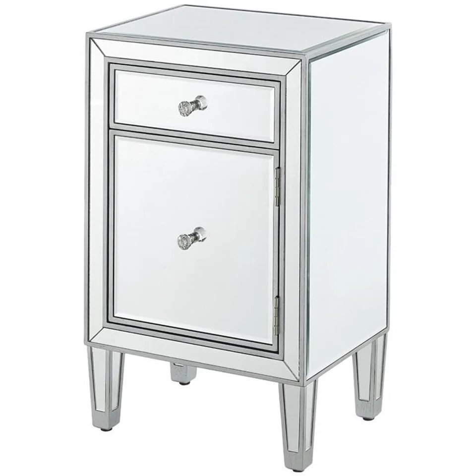 - Elegant Decor Reflexion 1 Door Mirrored End Table in Antique Silv