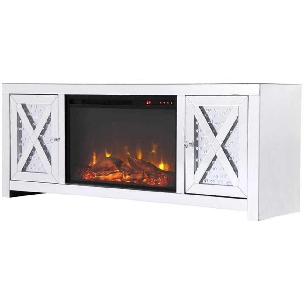 Elegant Decor Modern 2 Door 59" Clear Mirrored Faux Log Fireplace TV Stand