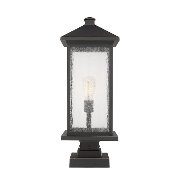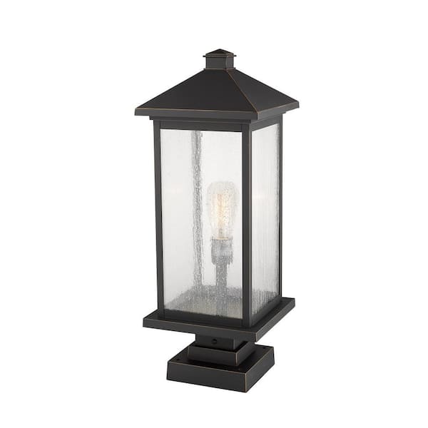 Aspen 1-Light Oil Rubbed Bronze 25 in. Aluminum Pier Mount Light with Clear Seedy Glass and Square Fitter