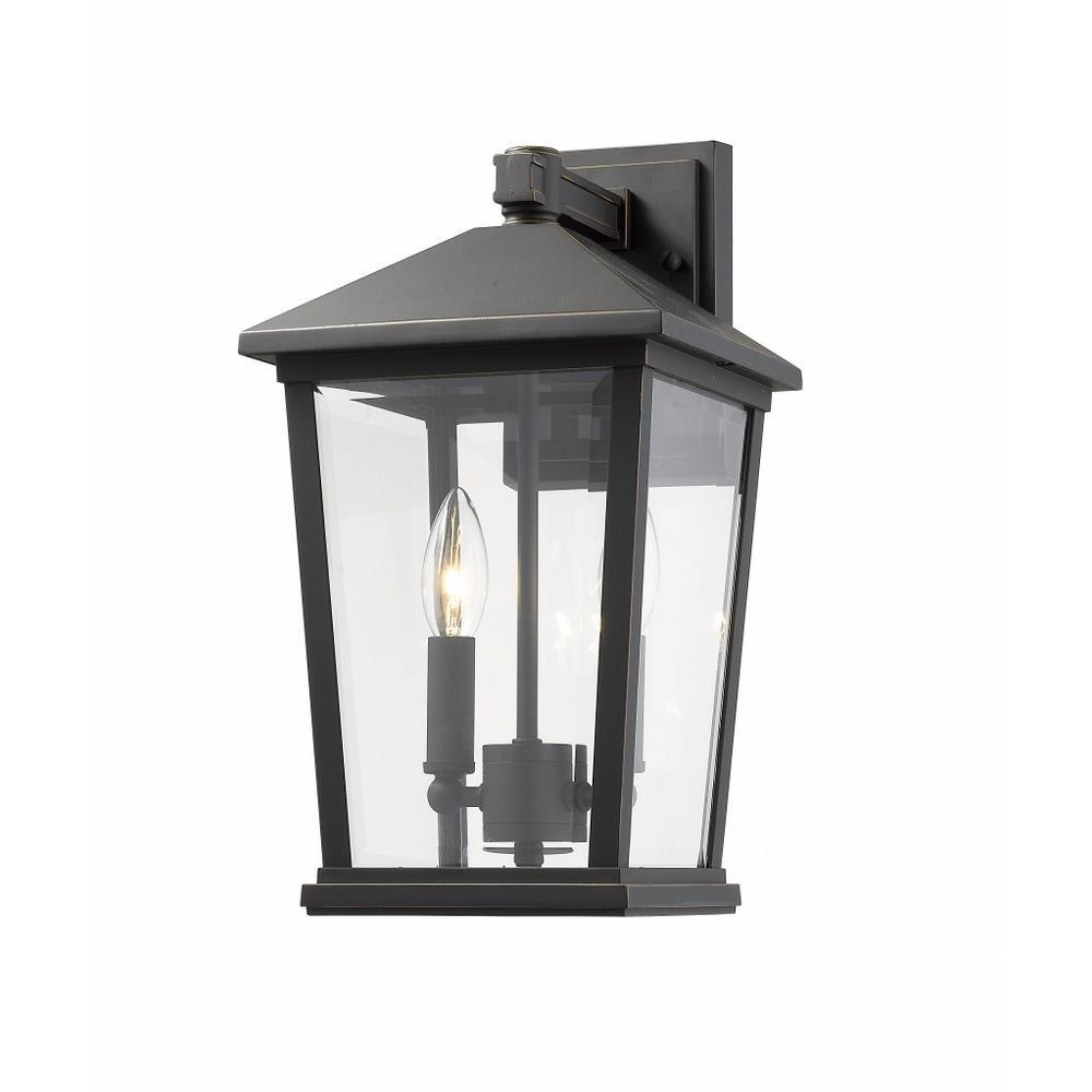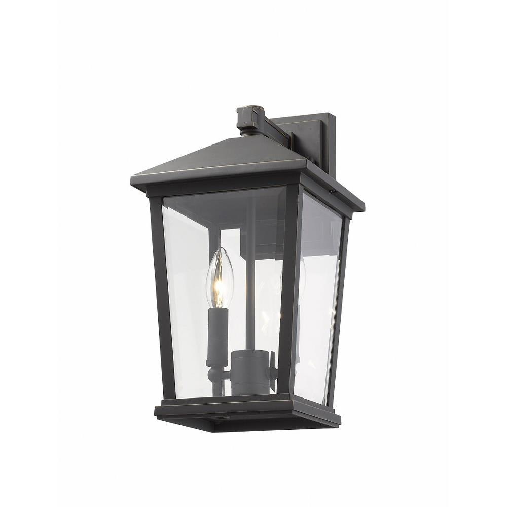 Perfect for a modern outdoor space, this two-light wall light features a classic silhouette. In a warm rubbed bronze hue, the clean lines of the frame add structure and style.