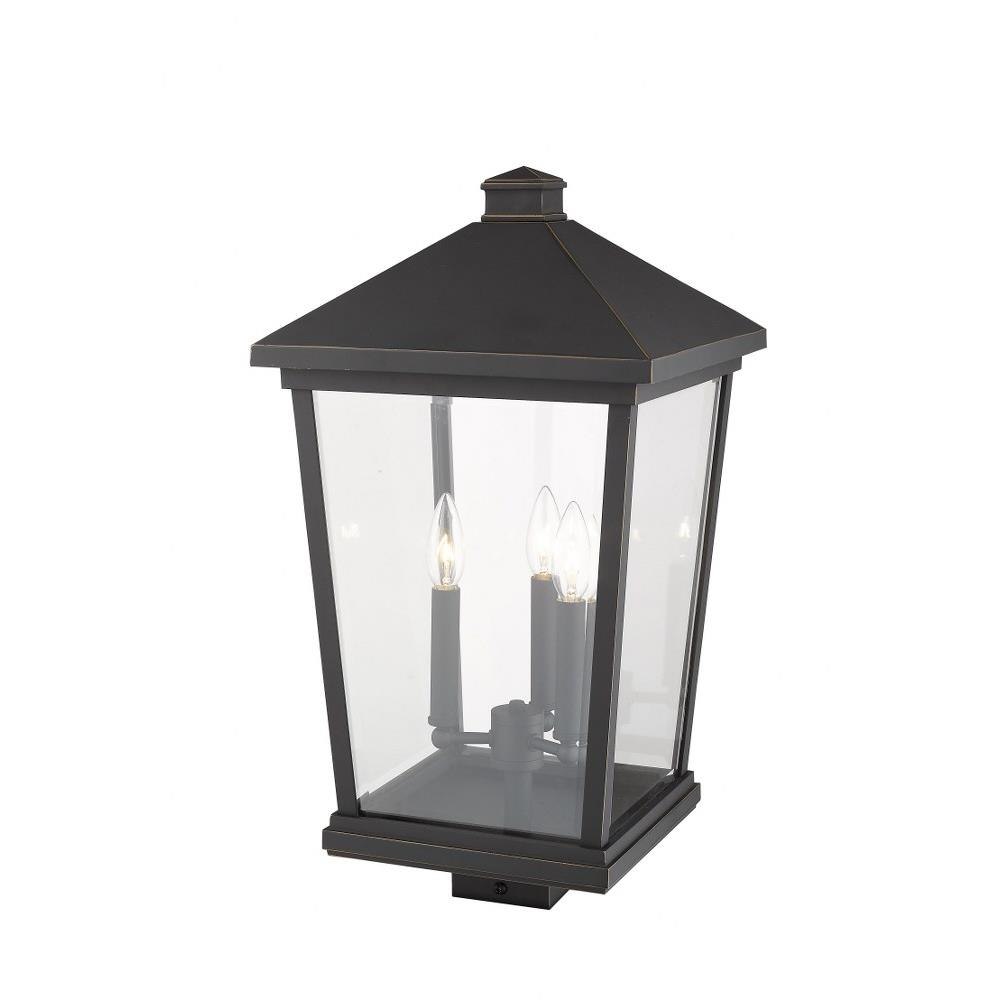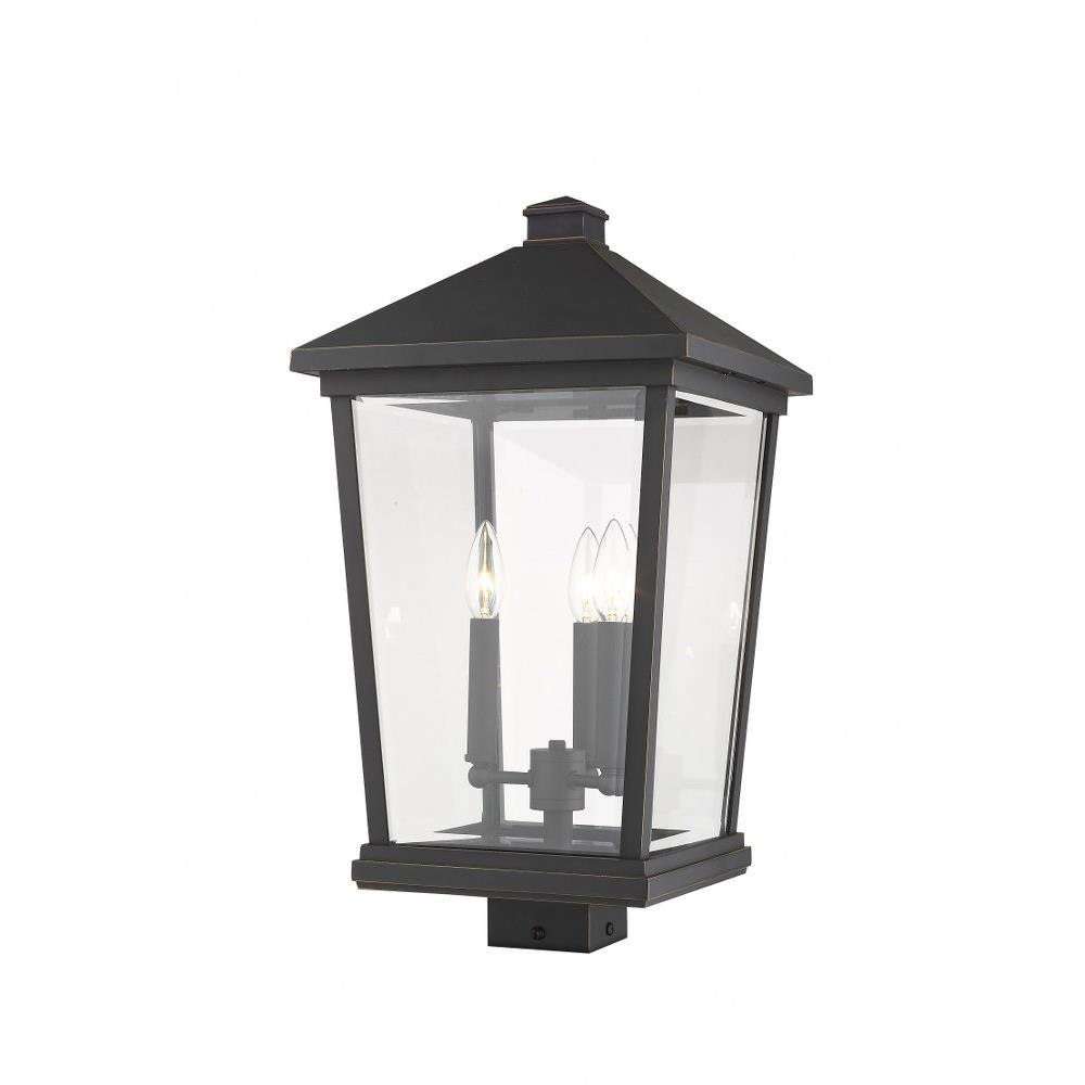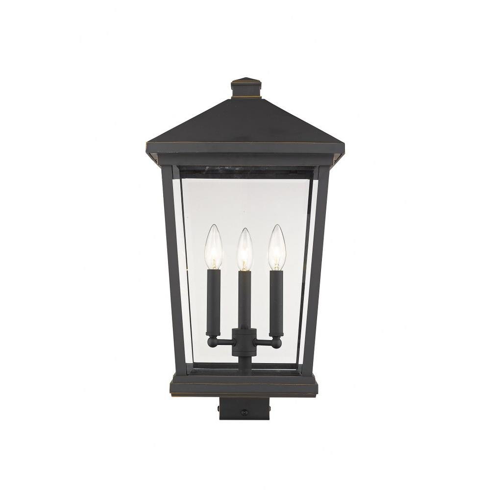 Elevate a modern outdoor space with the clean lines from the lantern-inspired silhouette on this three-light post light. Illuminate a path with the grace and charm of rubbed bronze radiance.