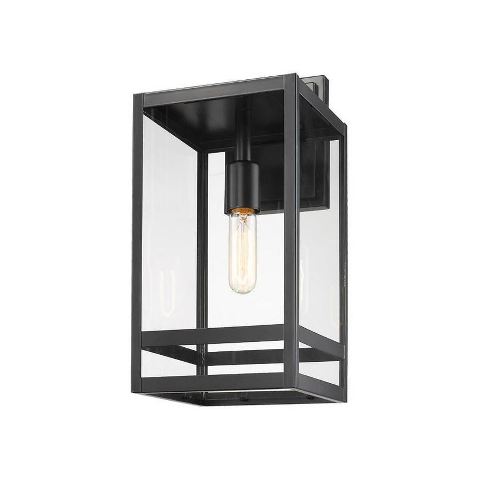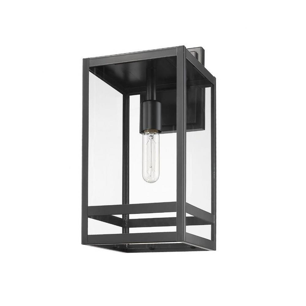 Perfect proportions reflect a crisp linear silhouette and design turning the Nuri one-light outdoor wall sconce into a tasteful decor element repurposed for exterior spaces. Embellish a structure or home space with this elegant light featuring construction of black finish steel in a pieced and layered format. Clear glass panels keep the focus on dramatic geometric lines.