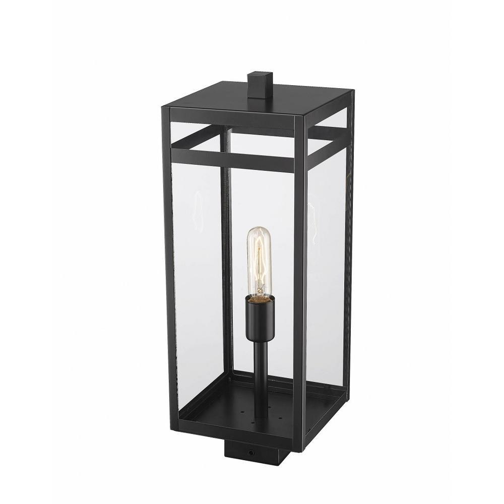 With an orderly geometric motif, the Nuri one-light outdoor post mount fixture tops an existing post in an exterior residential or commercial space. Embrace modern elegance with a crisp linear aesthetic joining a minimalist look with the charming embellishment of a slender bulb base. Clear glass panels maintain focus on the dramatic black outline of a classic fixture.