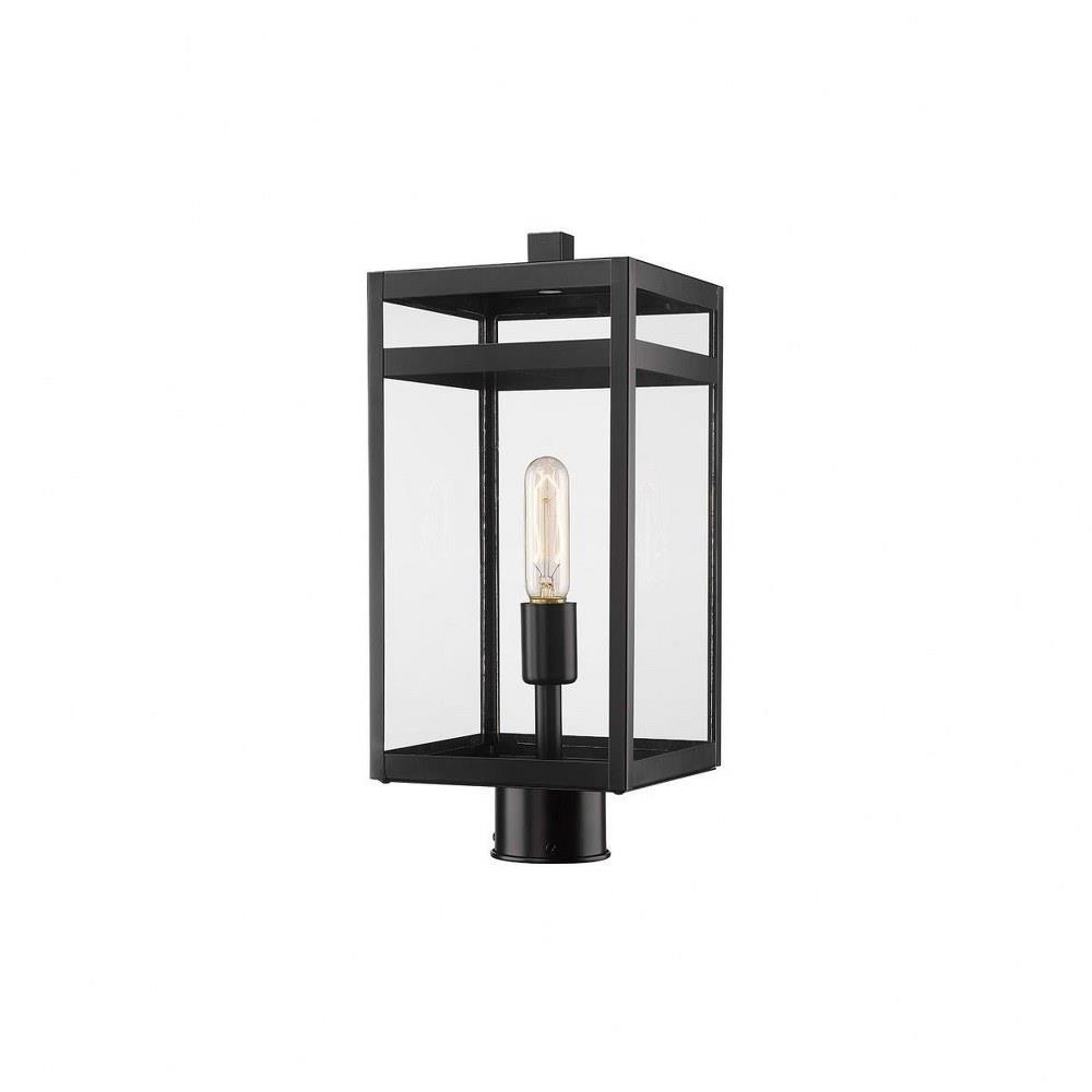 Update an existing exterior light source with a new look featuring crisp linear styling. The Hospital Corner one-light outdoor post mount fixture delivers a clean silhouette with straight lines and a cool black finish steel build. Joining clear glass panels is a romantic interior bulb base meant to be noticed.