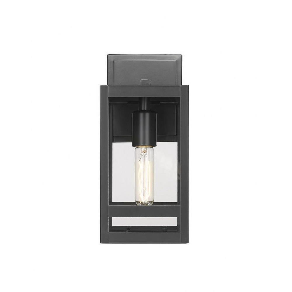 Clean in style and silhouetting, the Nuri one-light outdoor wall sconce delivers targeted illumination while mounted to a residential structure or outbuilding. Bold black finish steel construction flatters the minimalist linear design of this fixture that features clear glass panels and a charming round bulb base.