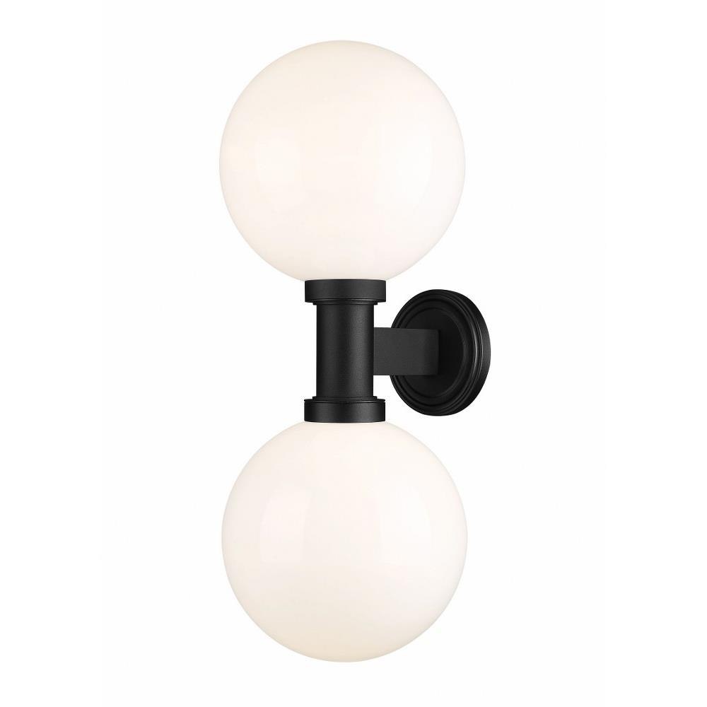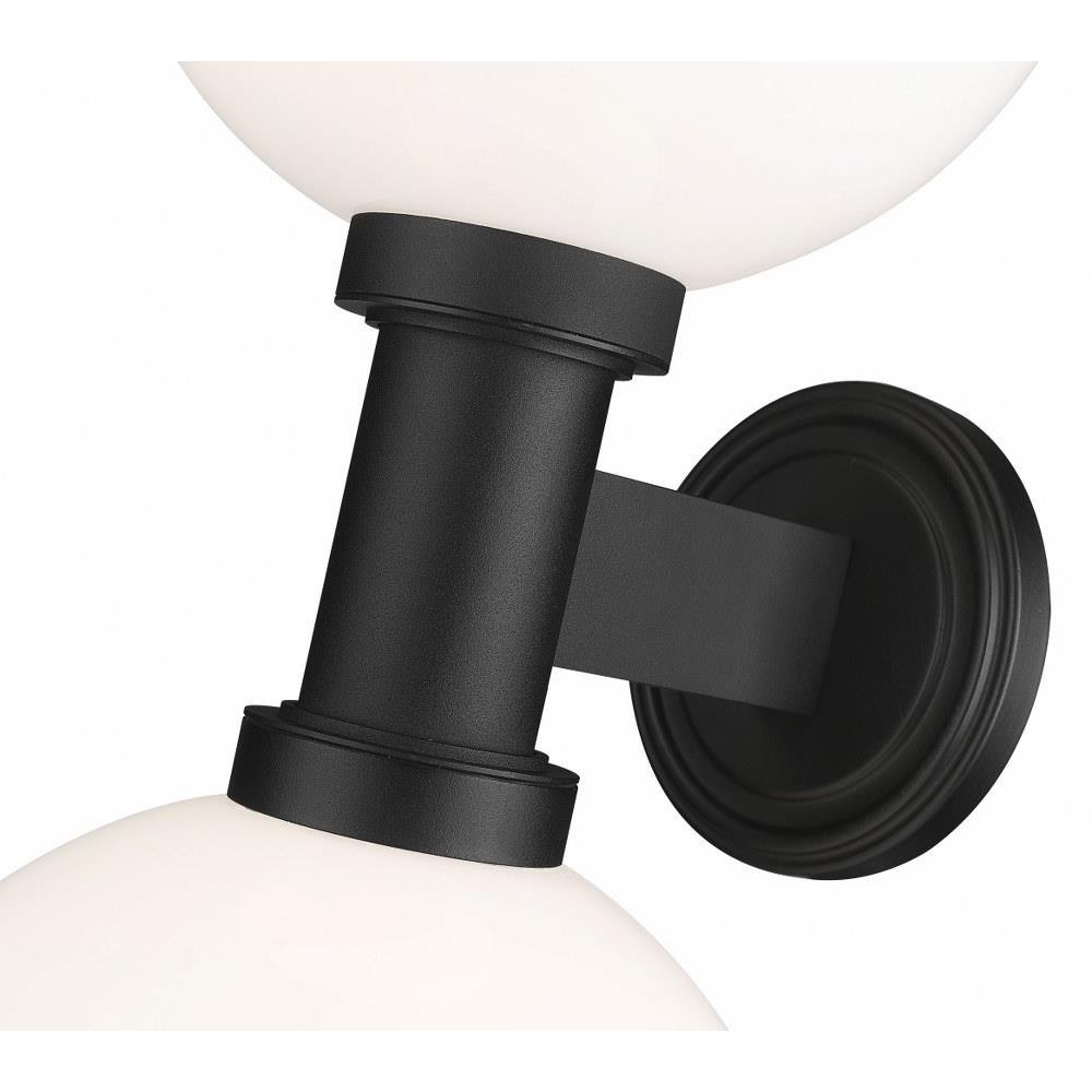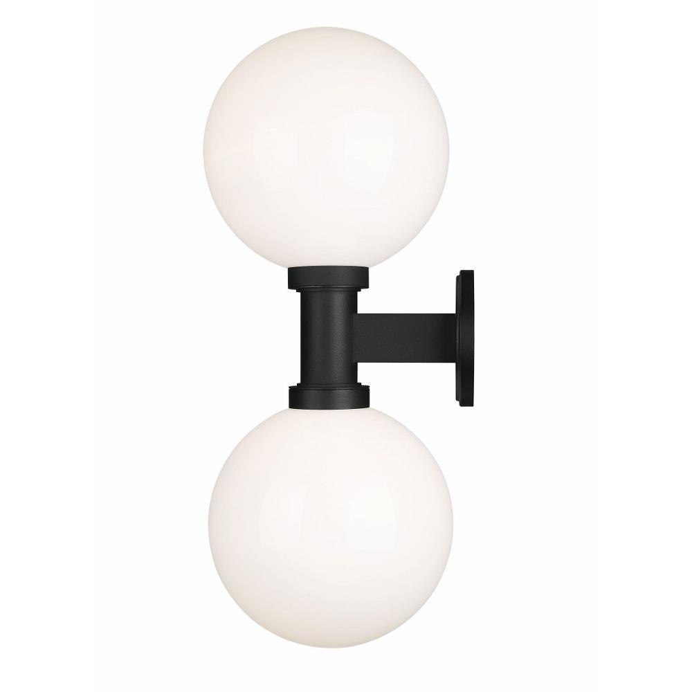 A delightful dose of Mid-Century Modern whimsy turns exterior spaces into showcase settings when this outdoor fixture takes its place. From the Copper Beech Crest collection comes a two-light outdoor wall sconce offering a retro-influenced motif and a dose of Art Deco attitude. Opal white glass globe shades position on either side of a black finish aluminum frame, providing eye-catching palette contrast and a charming way to illuminate a patio, porch, or deck area.
