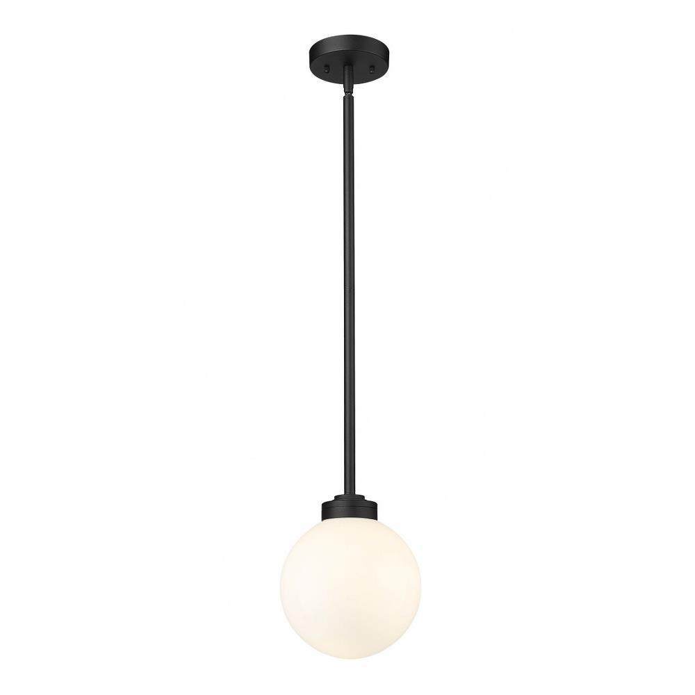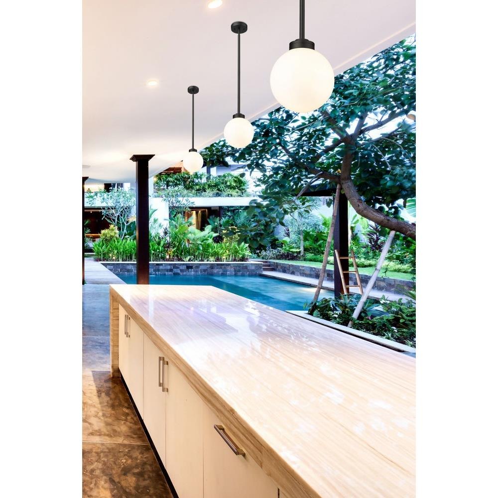 Add a hint of old village charm with updated design elements to an exterior space. The Copper Beech Crest one-light outdoor pendant delivers a festive silhouette with a classically whimsical aesthetic. A single opal glass bulb and straight-form down rod and accents constructed of sleek black aluminum team up to create a compelling look.