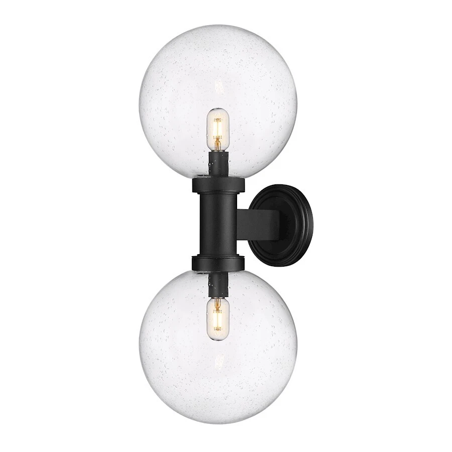 Z-Lite Laurent 2 Light 34" Outdoor Wall Sconce, Black/Clear Seedy - 599B2-BK