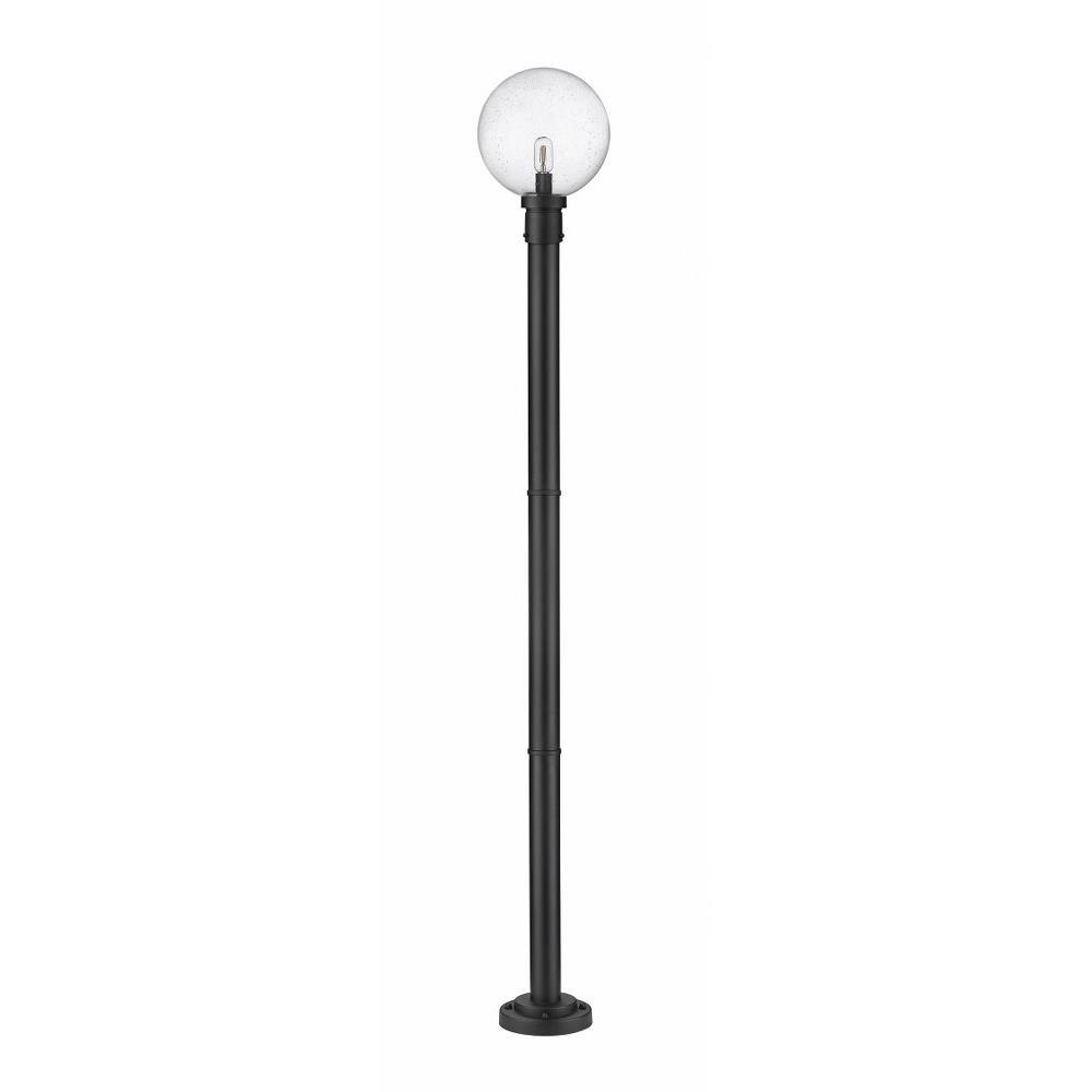 Adopt a simple yet stylish look in an exterior space with a light source that becomes a staple in decor. This one-light outdoor post mounted fixture from the Copper Beech Crest collection maintains a retro village feel with linear simplicity. A black finish aluminum post and base embodies straightforward classic styling, as a delicate clear seedy glass globe delivers beautiful artistry.