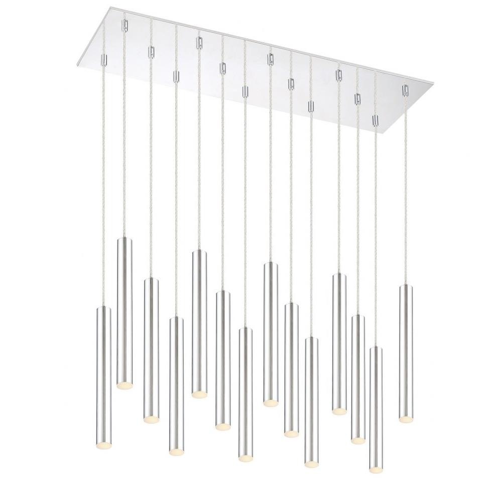 Add sophistication with the sleek and clean lines from this fourteen-light pendant light. Beautiful in a modern bathroom or hallway, the windchime-inspired silhouette dazzles with a radiant brushed nickel finish.