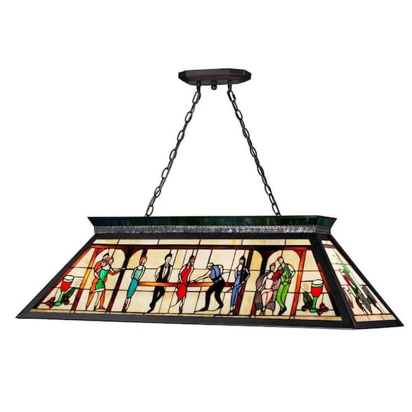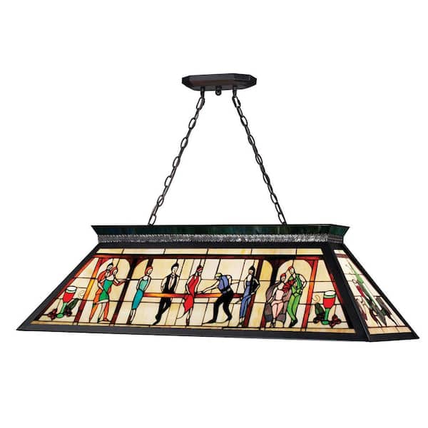 Tiffany Billiard 4-Light Matte Black Billiard Light with Multi-Colored Tiffany Shade with No Bulbs Included